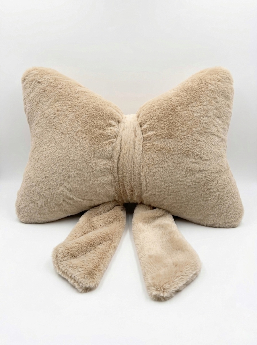Poduszka kokardka wykonana z pluszowego materiału. Idealna do dekoracji pokoju dziecka lub jako uzupełnienie wystroju wnętrz.